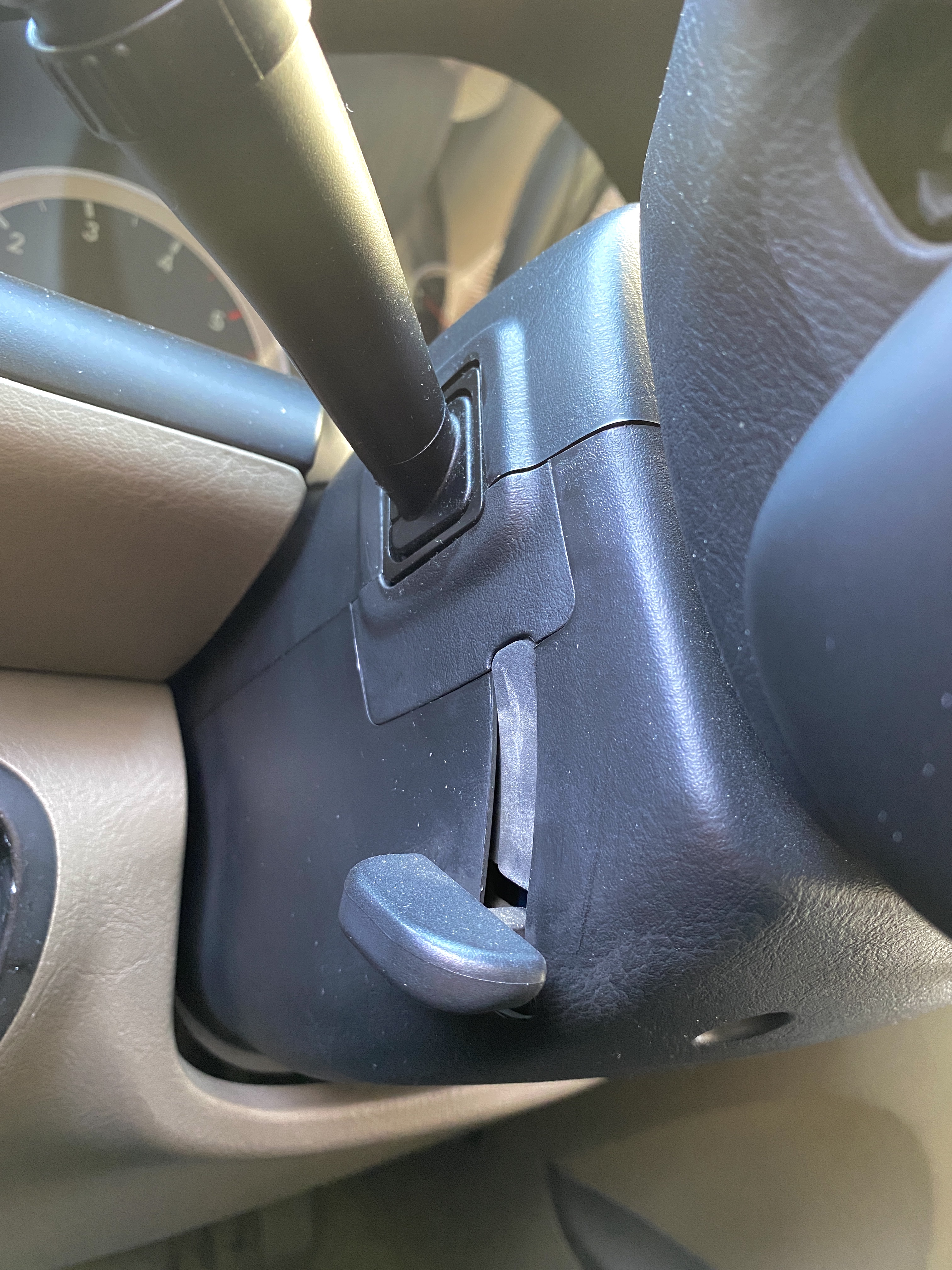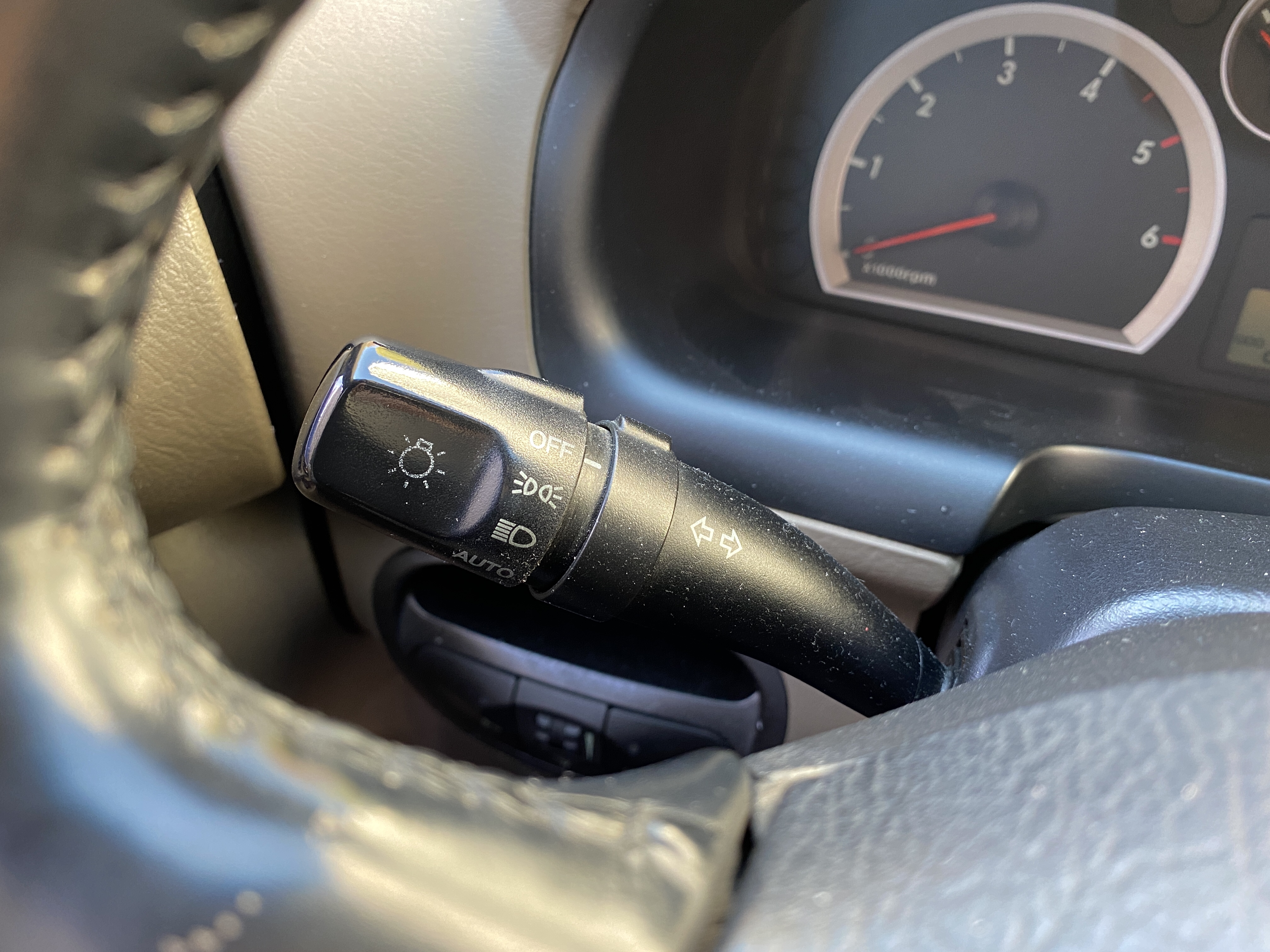 핸들 좌하단으로는 작은 수납공간과 계기판 밝기 조절 컨트롤러, 전후방 안개등 스위치가 자리잡고 있습니다.