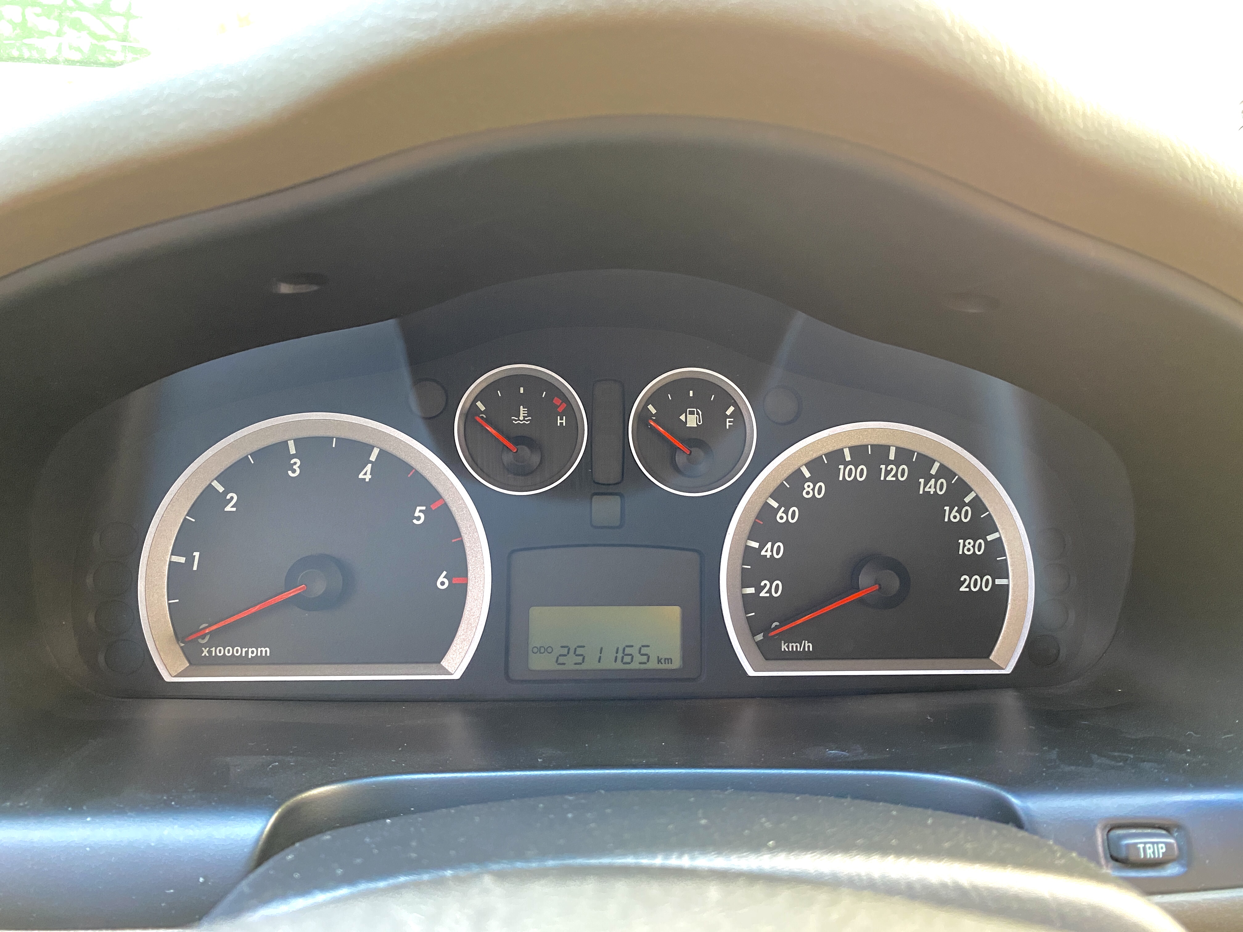 계기판에는 RPM게이지, 속도계, 온도계, 연료 게이지와 함께 중앙에 흑백 트립 컴퓨터가 지리잡고 있습니다.