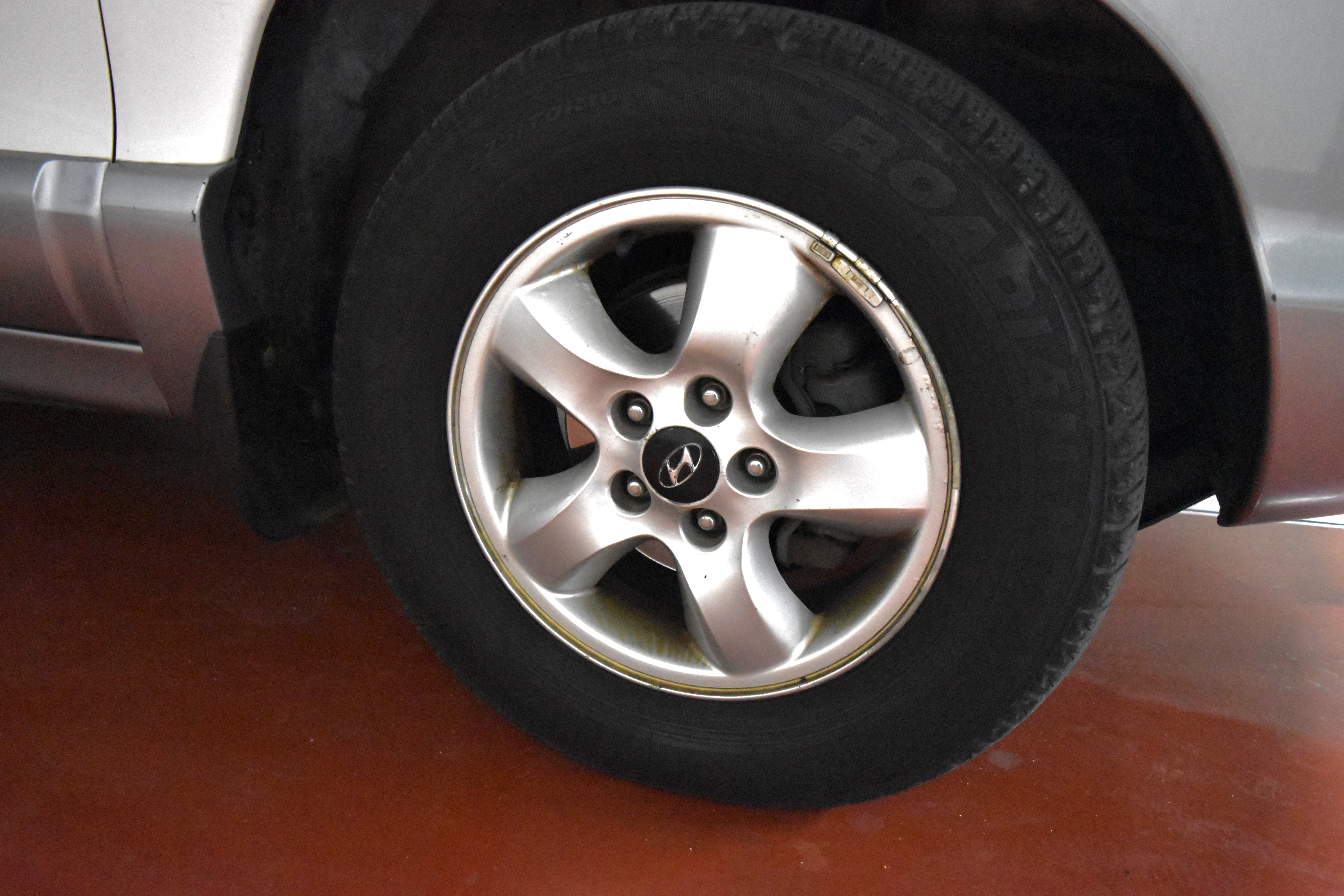 휠은 16인치 5스포크 타입 알로이 휠이 적용되어 있고, 안쪽으로는 전/후륜 모두 디스크 타입 브레이크가 적용되어 있습니다.
