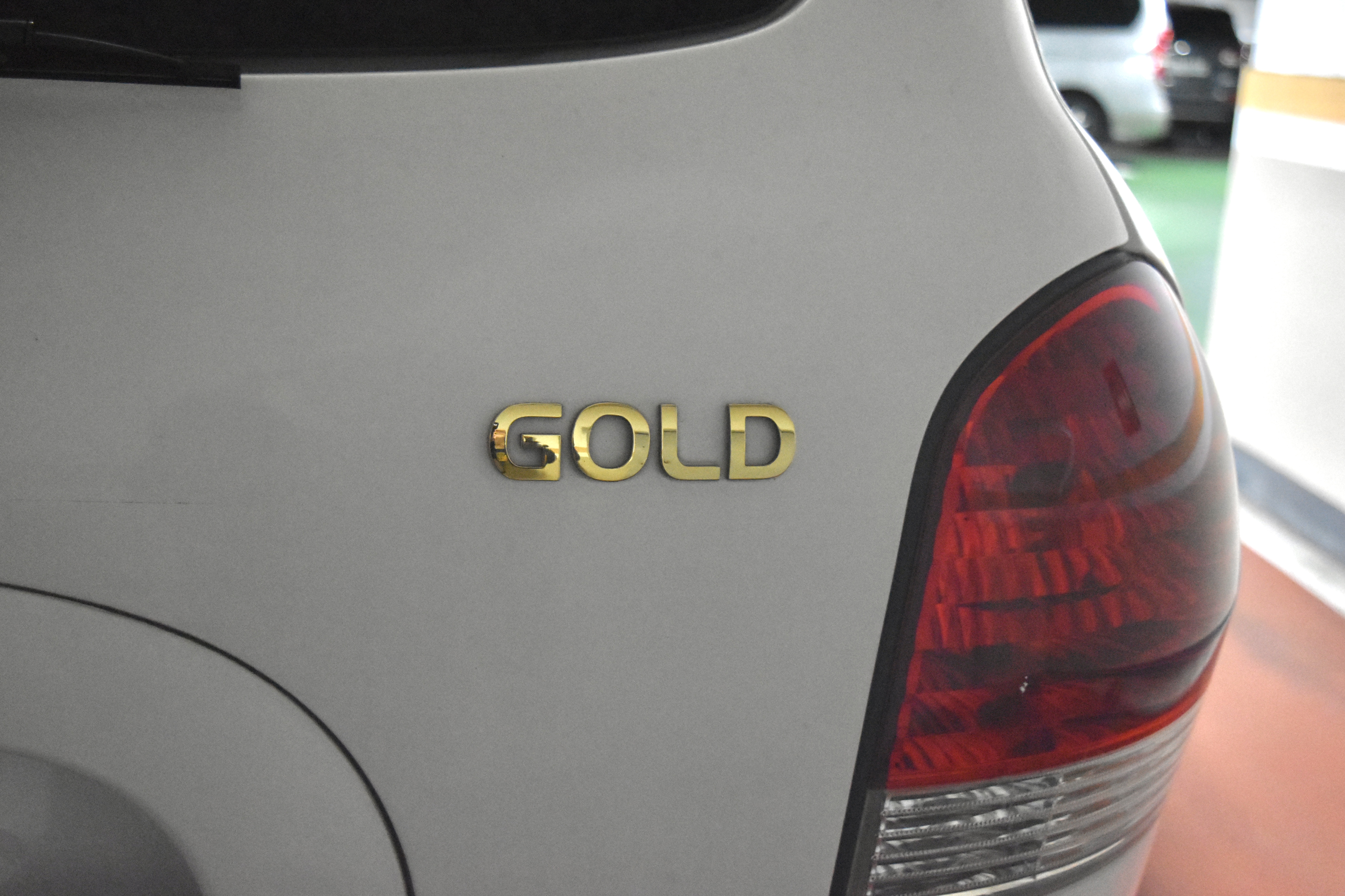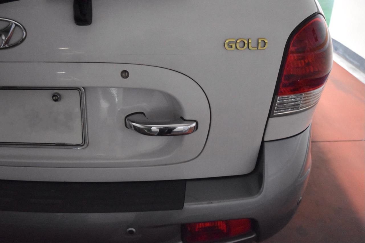 우선 왼쪽에는 SANTA FE 엠블럼이, 오른쪽에는 차량의 등급을 나타내는 GOLD 엠블럼이 자리잡고 있습니다.