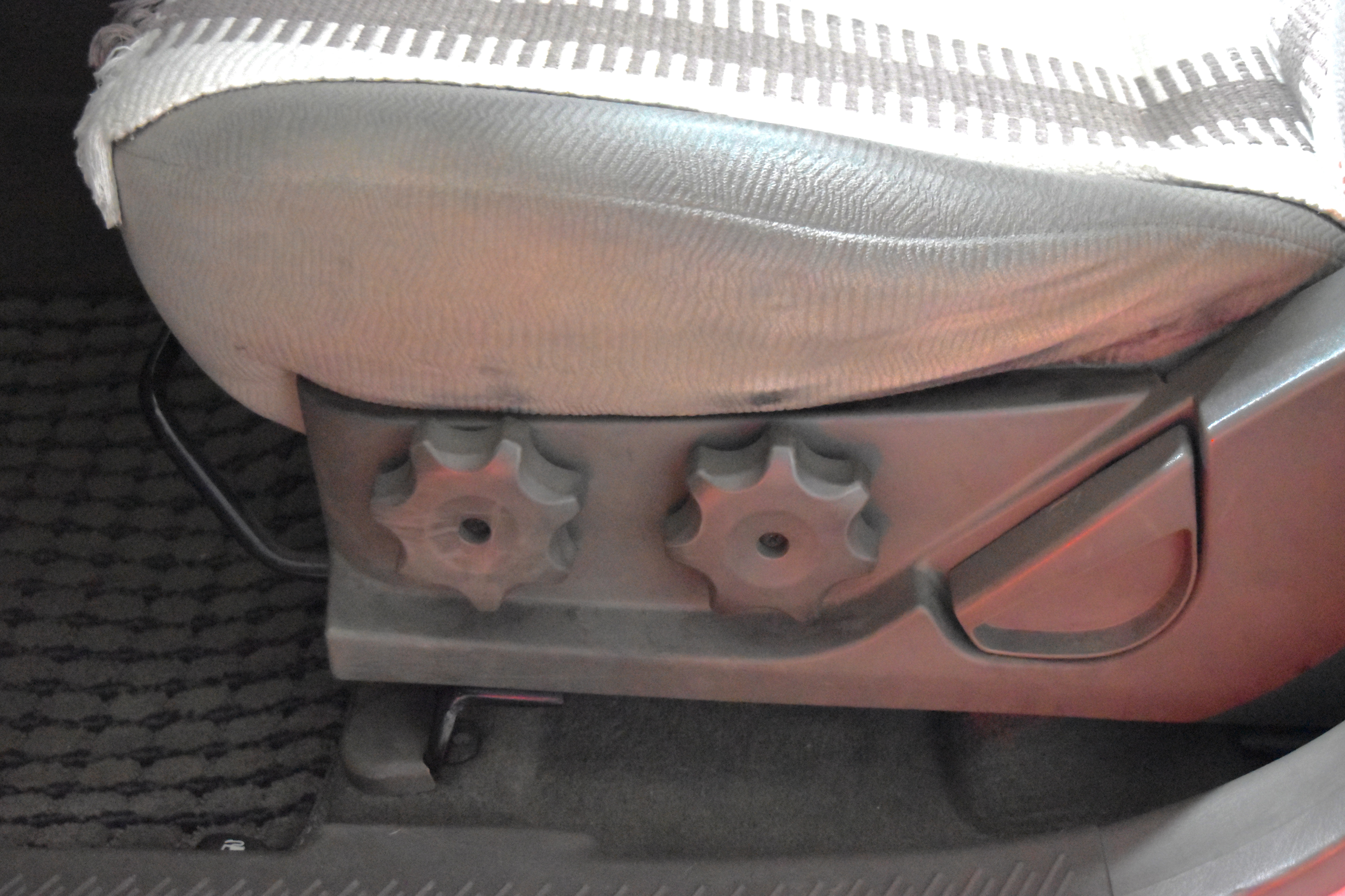 시트의 경우는 높낮이, 등받이 각도, 앞뒤 조절, 럼버 서포트 모두 수동식 조절 장치가 적용되어 있습니다.