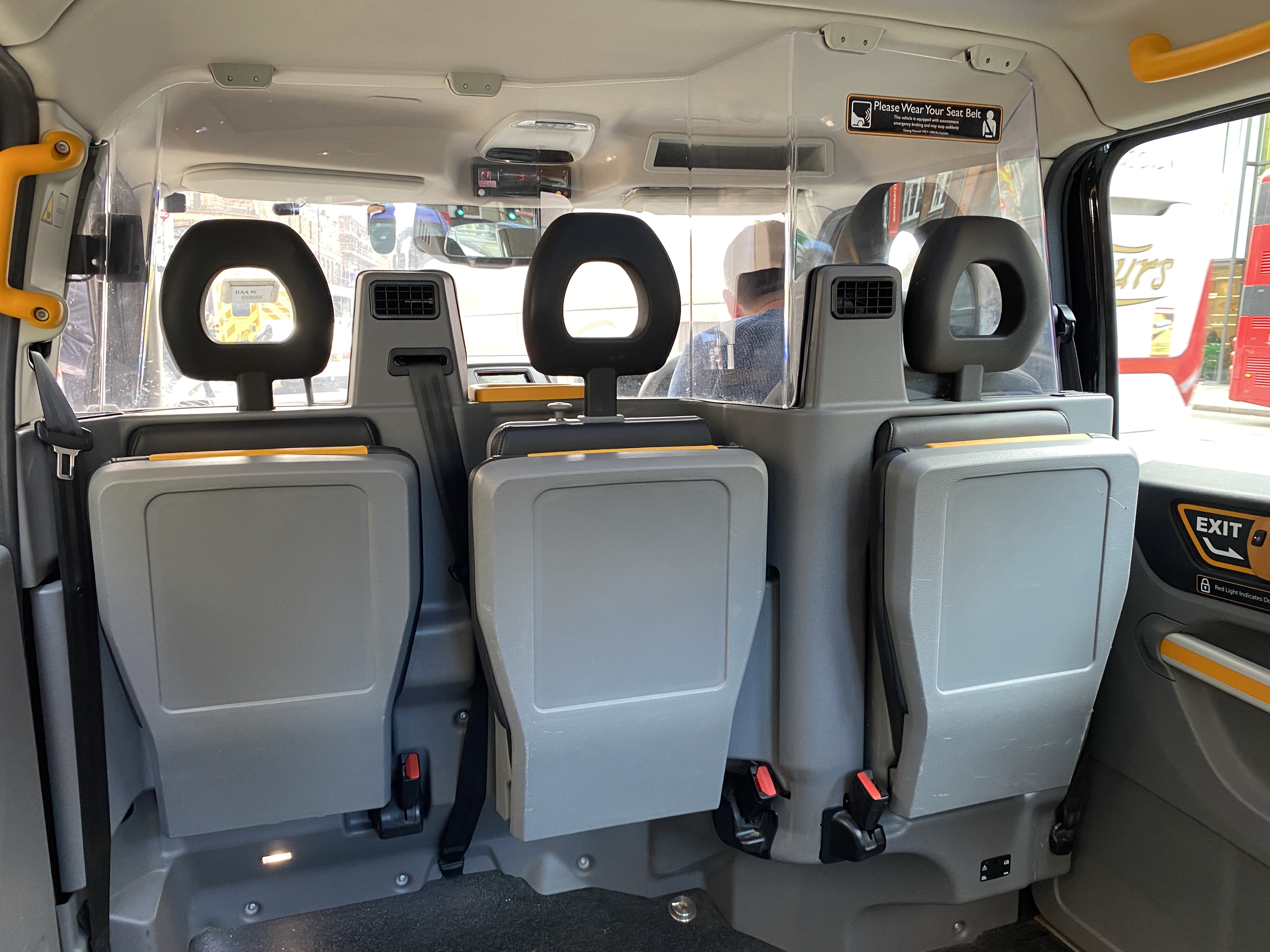 승객석과 운전기사의 공간이 투명 플라스틱 벽으로 분리되어 있다 보니 이런 장치들도 함께 제공되는것 같습니다.