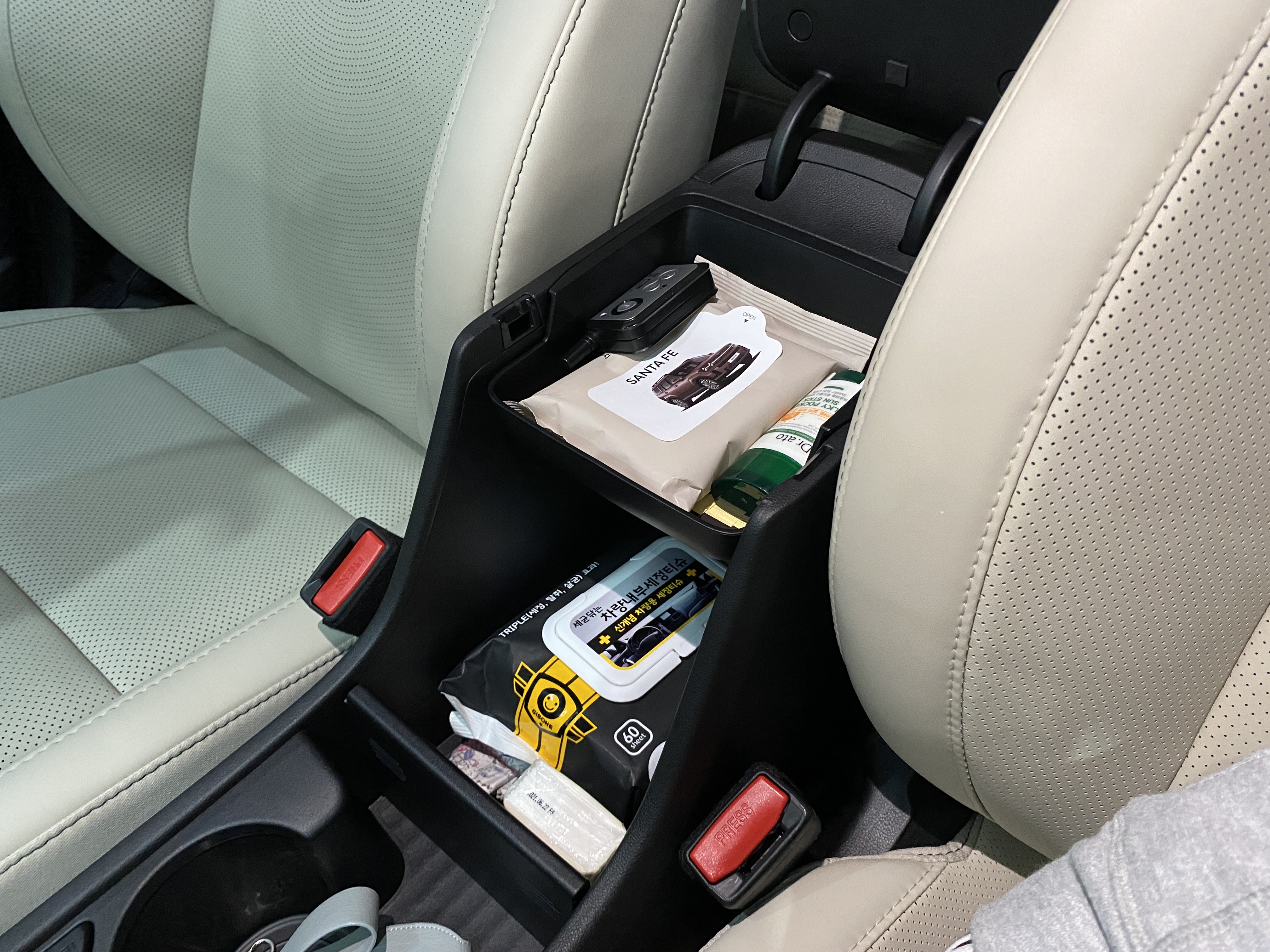 센터 콘솔박스의 모습인데요, 2단으로 구성돼 있으며 밀폐형이 아닌 개방형입니다.
