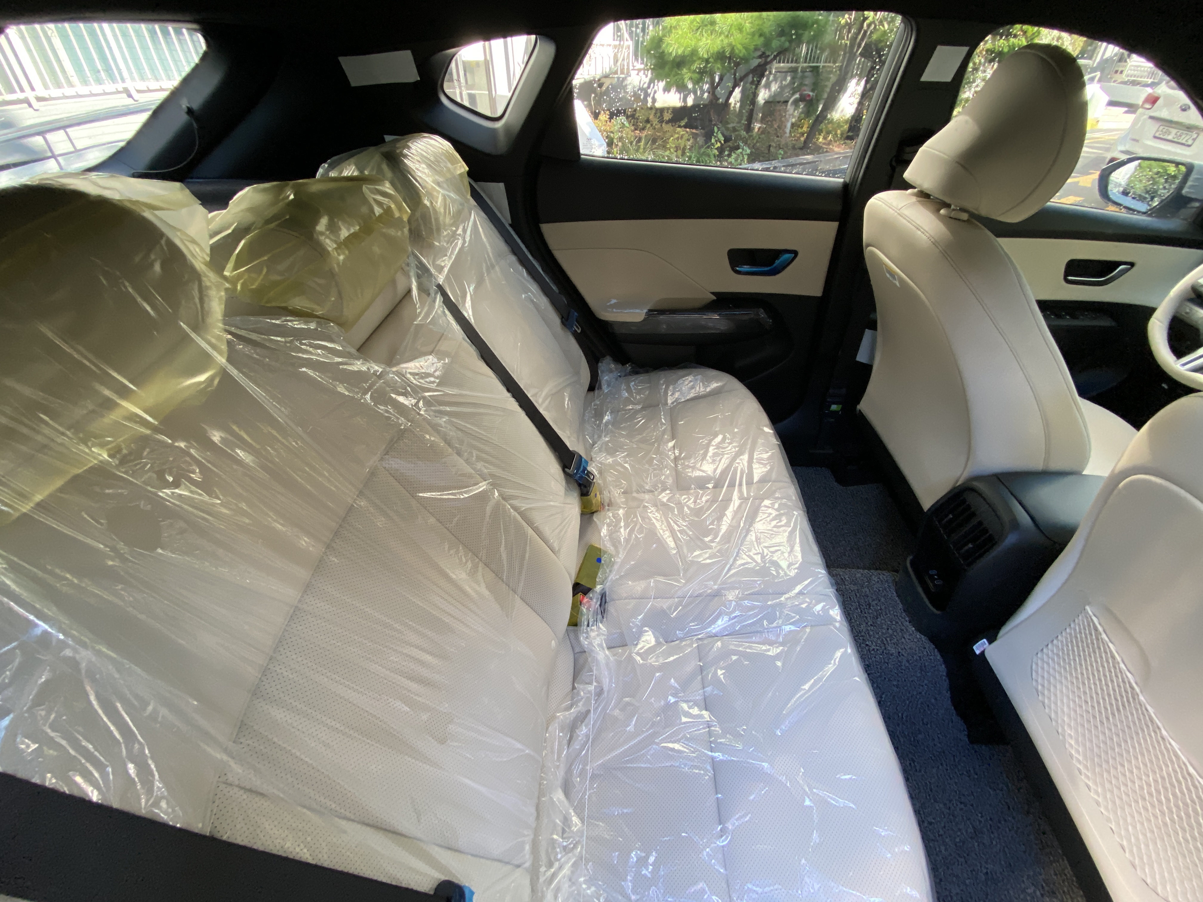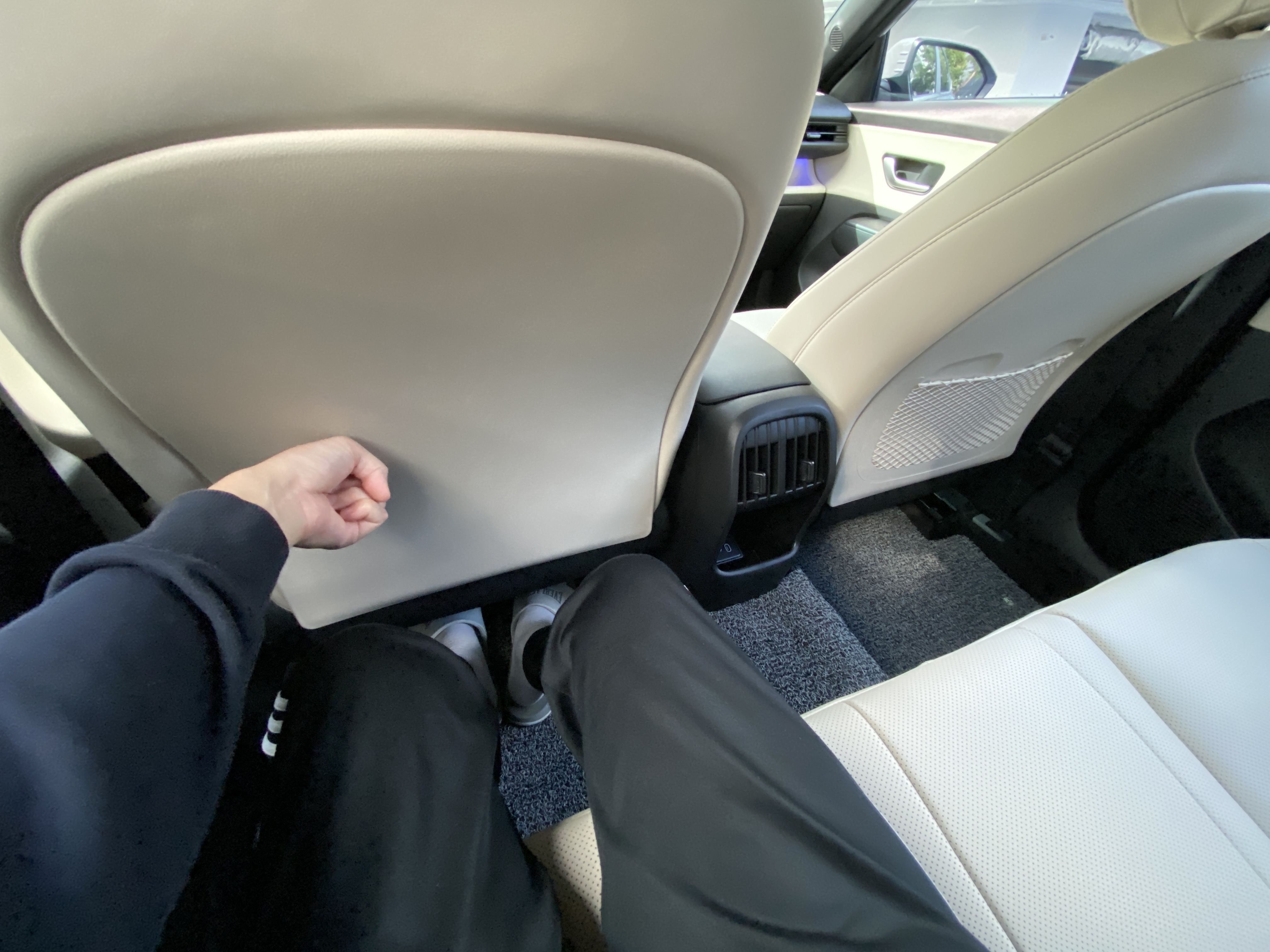 2열 거주성은 키 176cm 운전자가 운전석을 세팅해놨을 때 그 뒤에 탄 키 176cm의 탑승객 무릎과 운전석 등받이 사이에 주먹 2개 정도가 들어가는 넓이입니다.