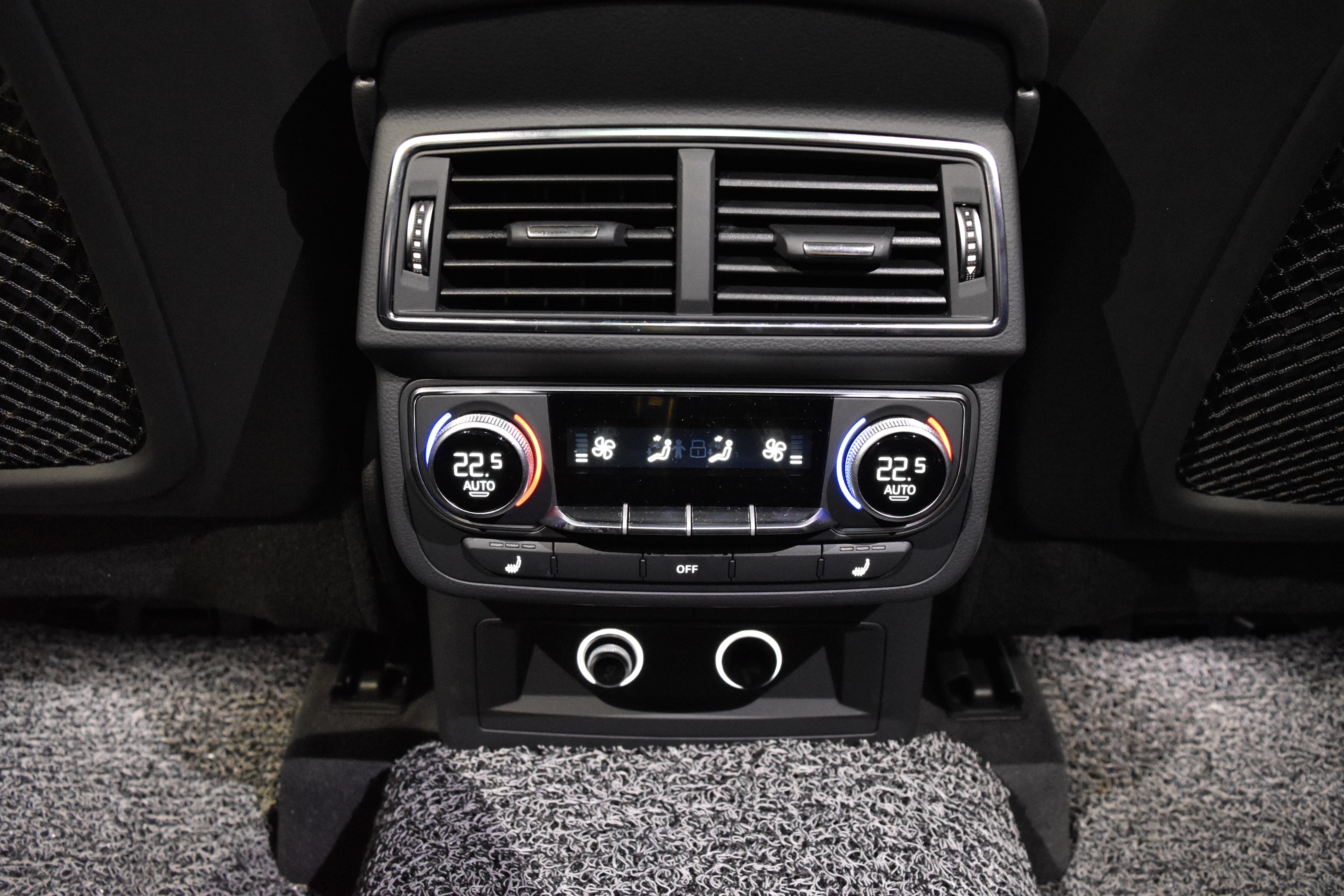 중앙 좌석 앞쪽으로는 후석 좌, 우 독립 제어가 가능한 공조 컨트롤 패널과 열선시트 버튼,