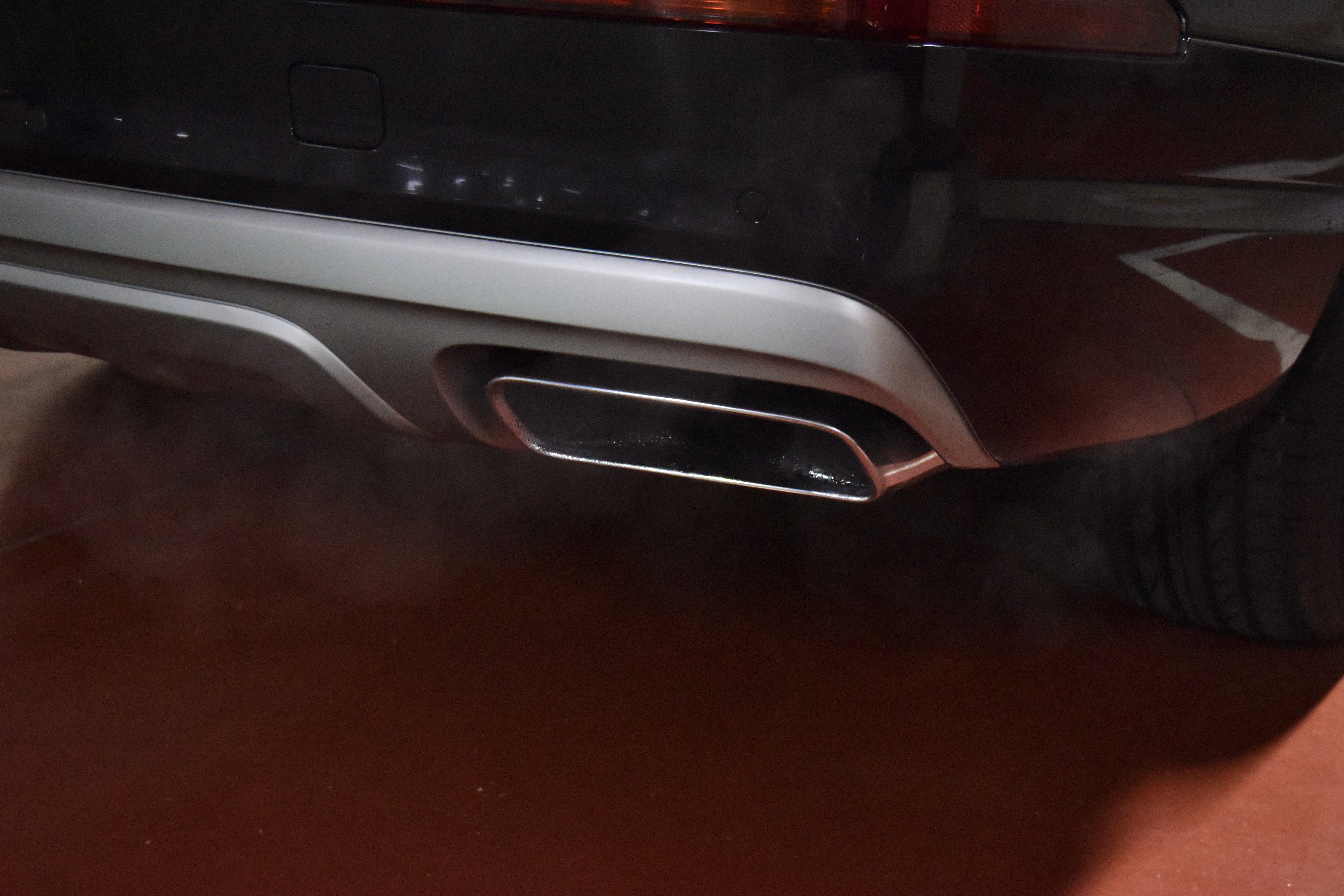그 아래로는 은색 무광처리 된 디퓨저 겸 스키드 플레이트와 싱글팁 듀얼 머플러가 자리잡고 있습니다.