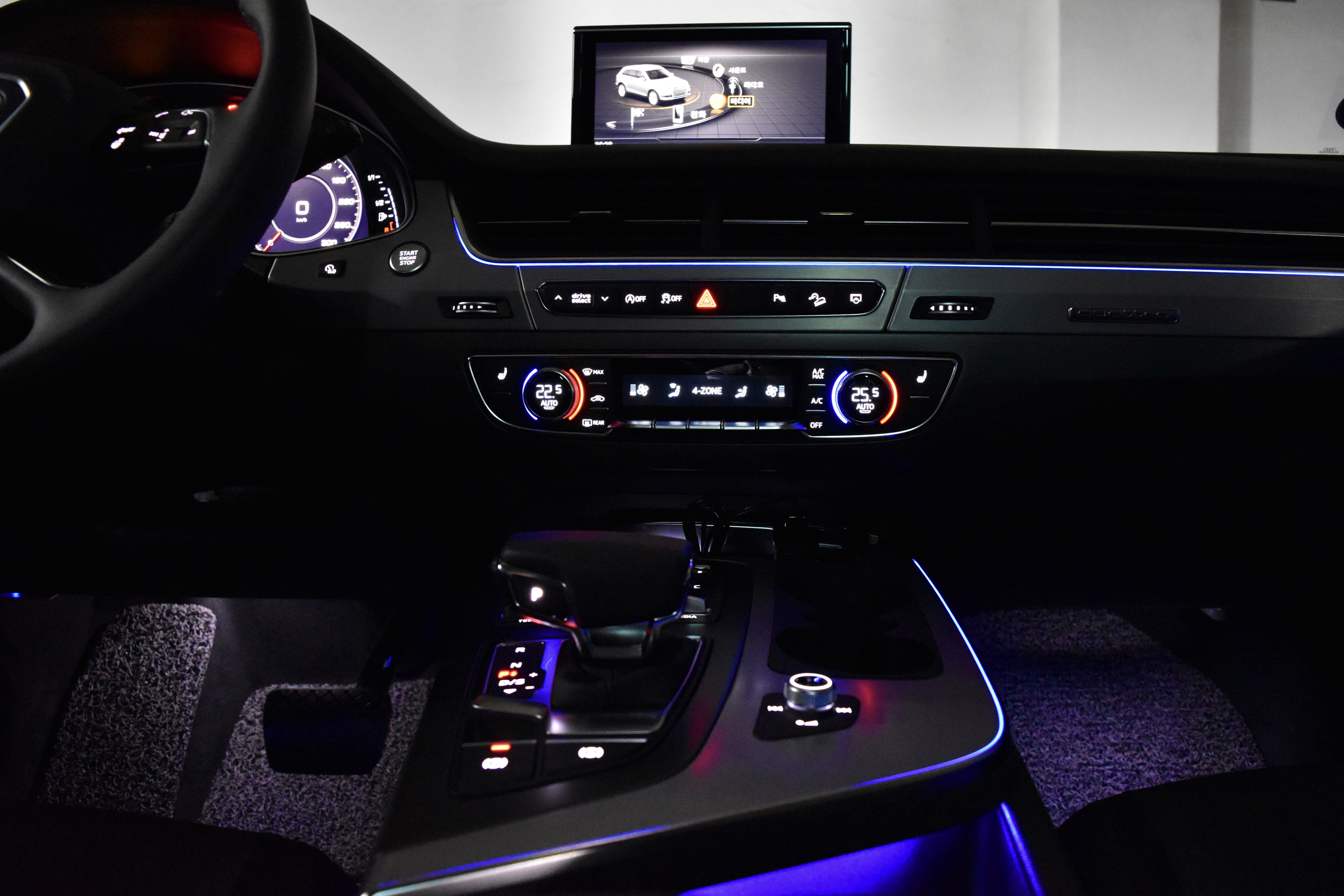 아우디 로고 도어 라이트의 경우는 1열과 2열 오른쪽, 왼쪽의 4개 도어에 모두 적용이 되어있습니다.